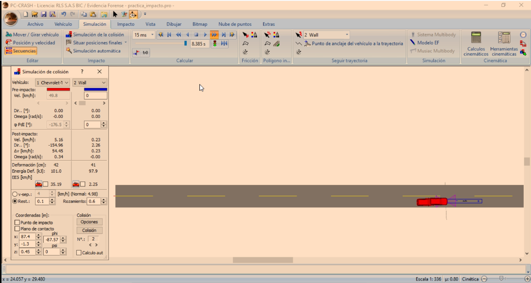 Programas como PC-Crash permiten recrear el accidente en un entorno virtual utilizando datos reales del caso, como: